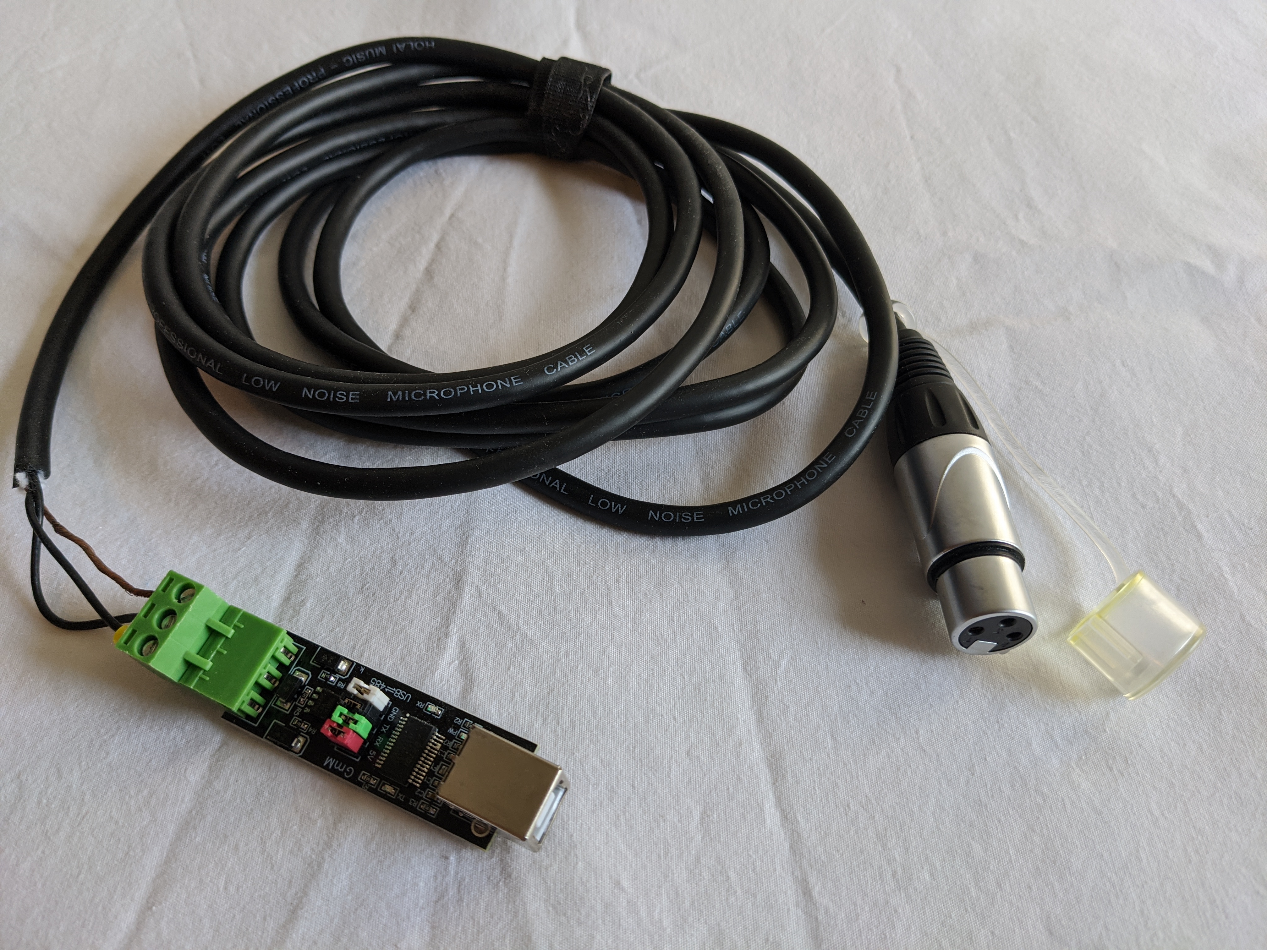 A USB to DMX interface allows control of theatrical lighting fixtures.