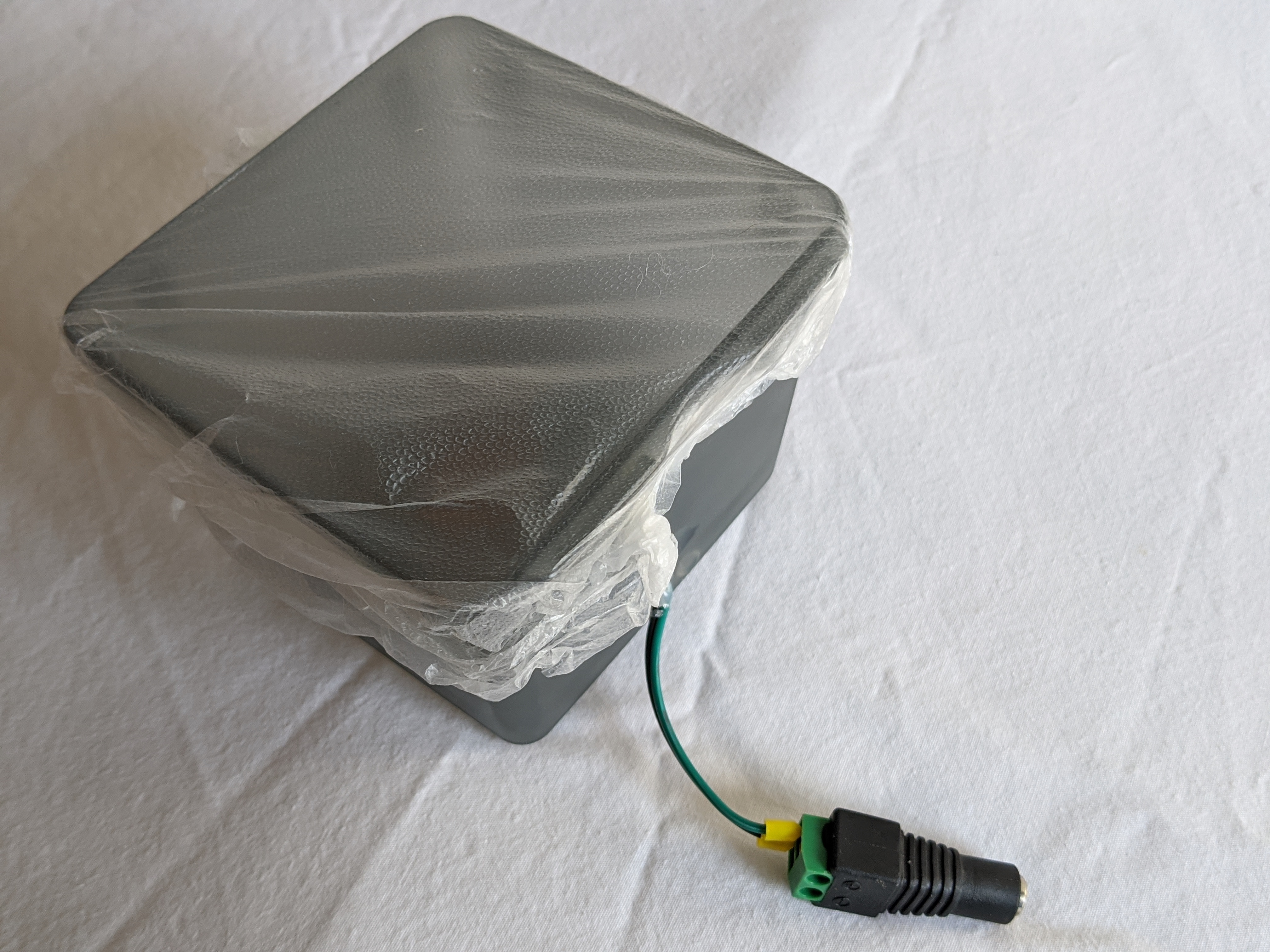 Raspberry Pi does not have an Analog to Digital Converter (ADC) built in. This means that reading analog sensors is not possible without an external ADC. This project uses a 32 channel I2C ADC to read each sensor individually. Each ADC input has a 10kΩ resistor in parallel to ground for voltage division. Pairing the ADC with RJ45 breakouts means all sensors can be mounted on an opposite wall, with a single CAT5 cable connected back to the Pi. The individual sensor housings are constructed by soldering a photoresistor to a small protoboard, with leads connected to a barrel jack connector outside the food container. The protoboard is hot glued in place for strain relief. Diffused plastic wrap is not required, however, covering the opening of the food container with this material will difuse the light from the laser, allowing the sensor to detect the laser even when the beam is not perfectly centered on the photoresistor.